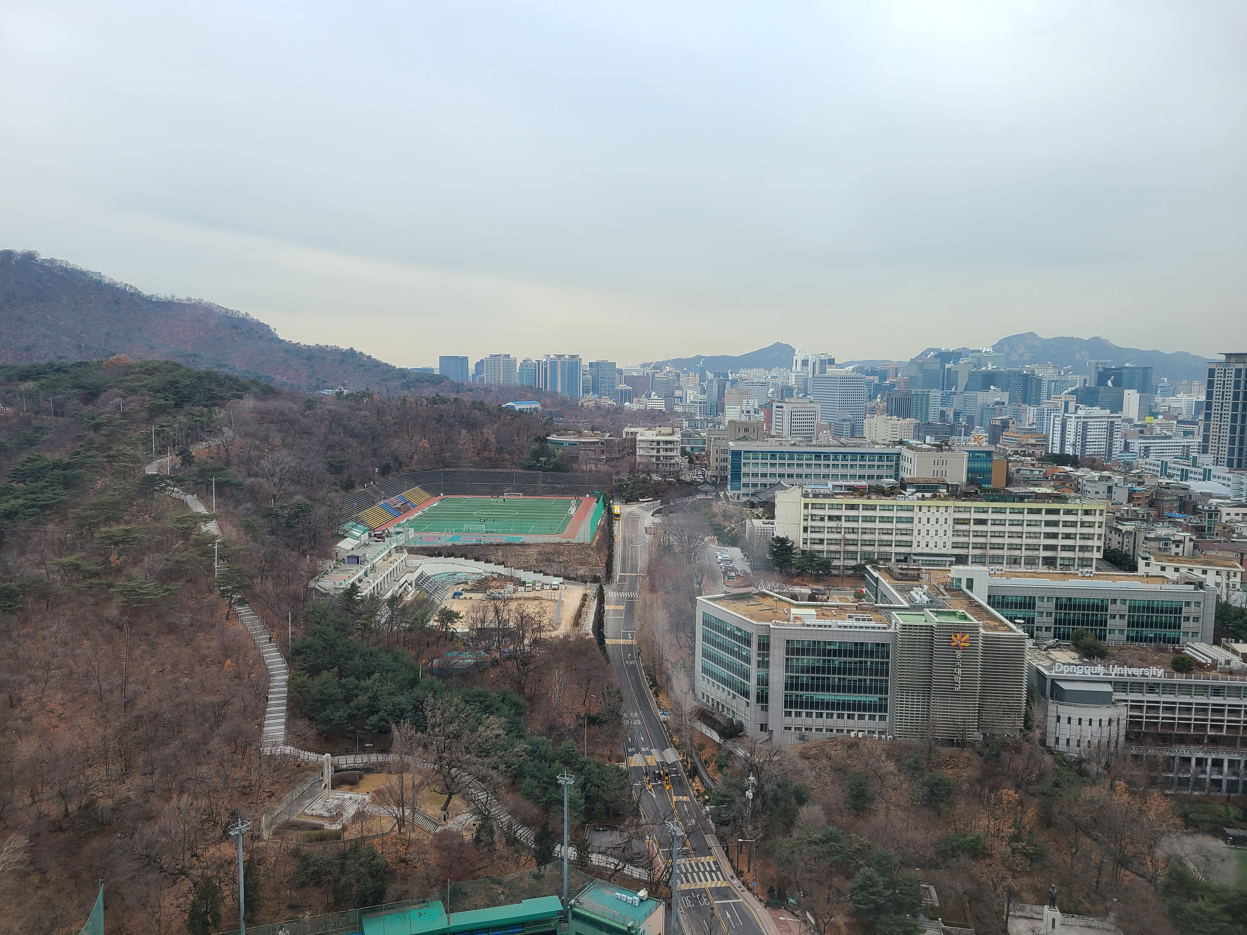 창밖으로 보이는 시원한 남산뷰. 한 겨울이 아닌 다른 계절에 왔으면 뷰가 더 멋있었을 것 같아요.