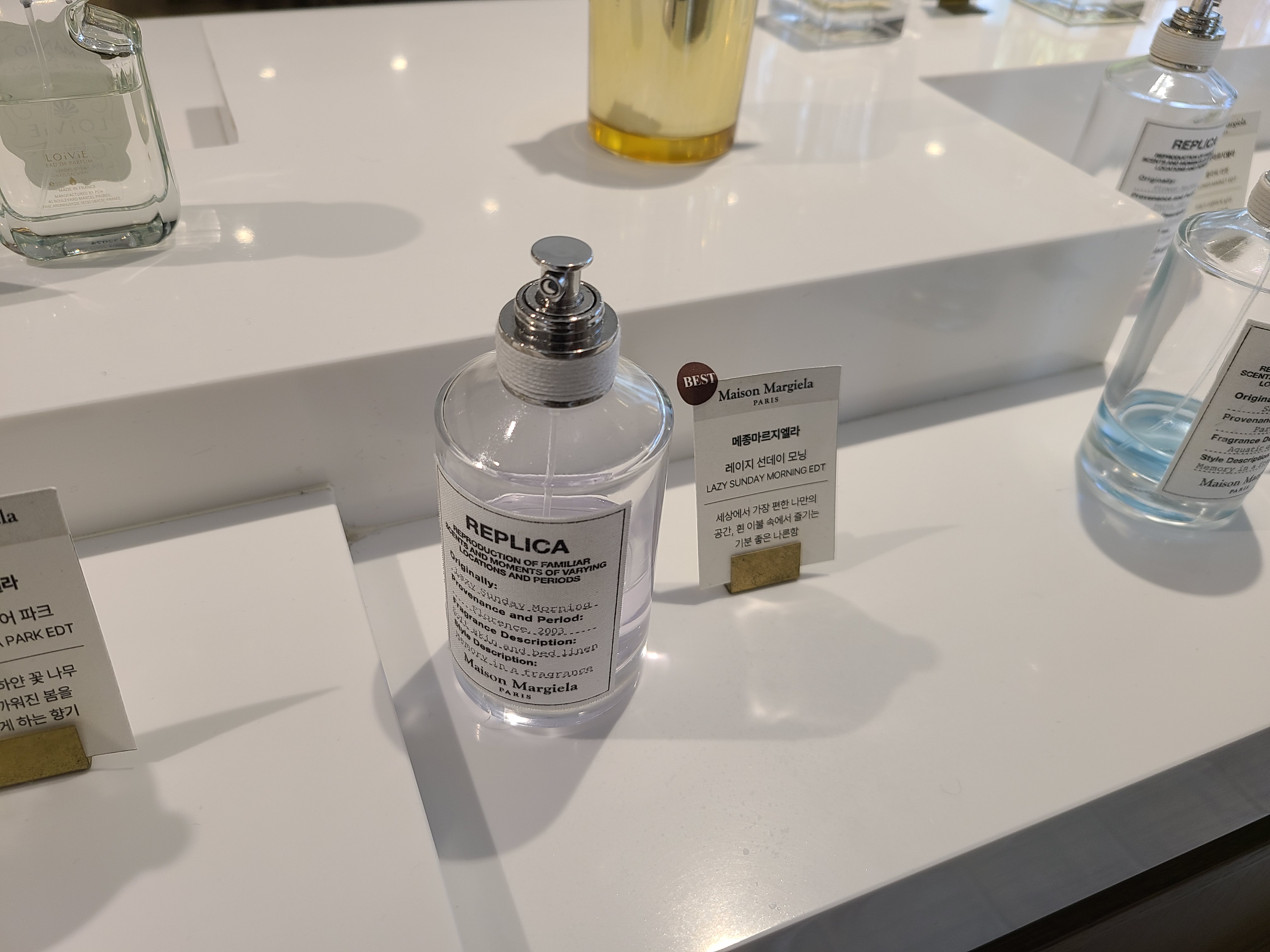 인기 있는 향수들은 양이 많이 줄어있었어요. 잘 모르는 향수라도 양이 많이 줄어있으면 시향해보기도 했습니다.