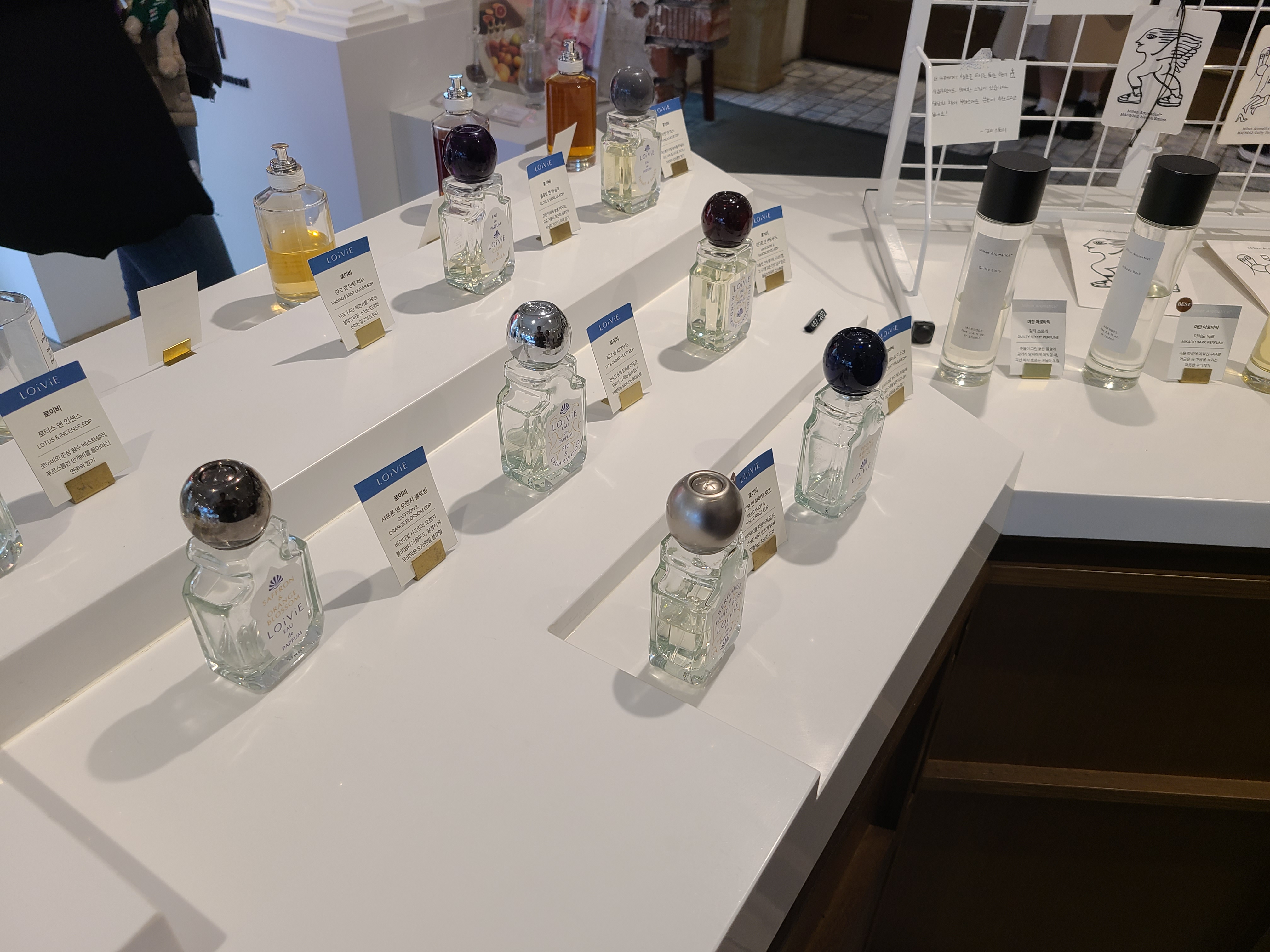 다만, 아쉬웠던 점은 모든 제품이 비치되어 있지는 않았어요. 방문하시기 전에 꼭 시향하고 싶은 향수가 있다면 매장에 비치되어 있는지 문의하고 방문하시는 걸 추천드립니다.