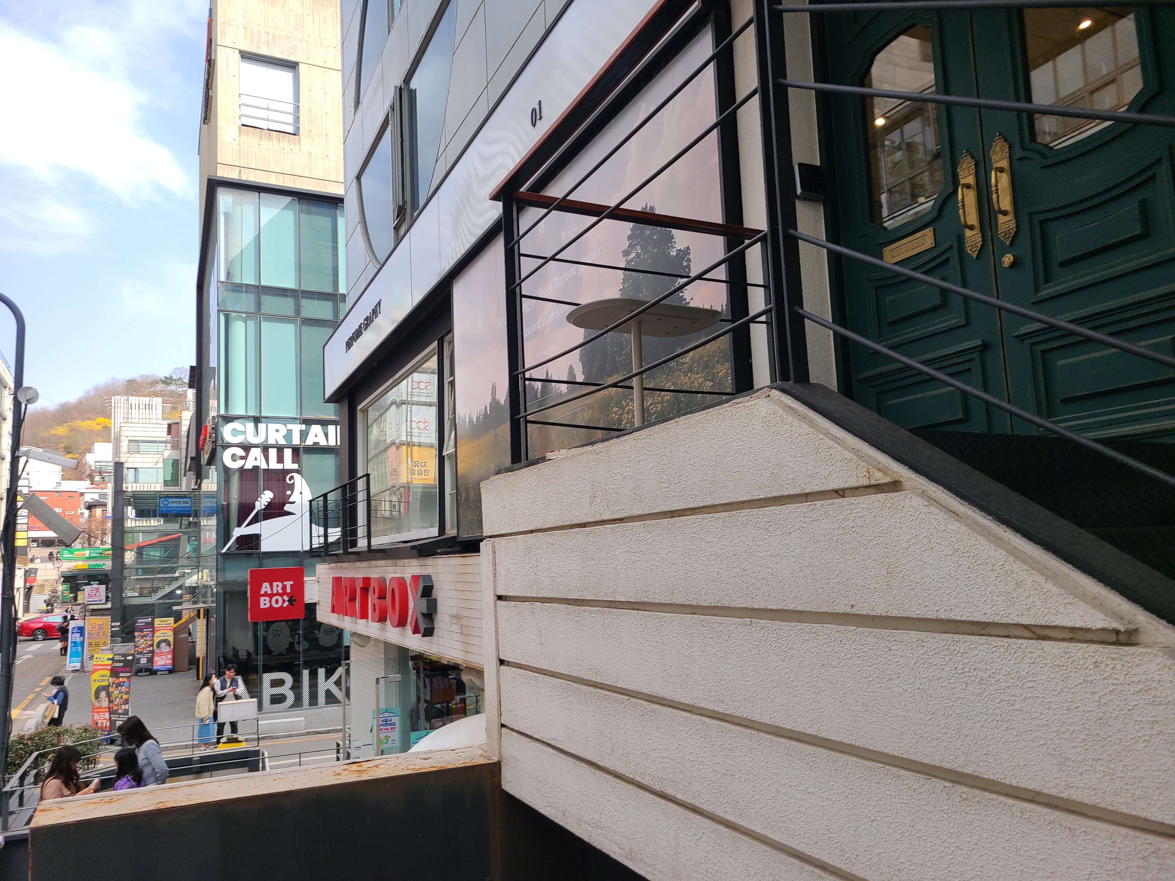혜화역 1번출구에서 나와서 도보로 5분 정도 거리에 위치해 있어요. 1층에는 아트박스가 있고, 2층은 퍼퓸그라피입니다.